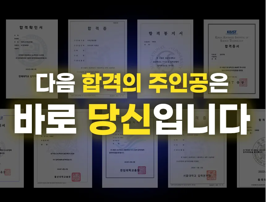 최신 전공 트렌드를 반영한 정답을 담은 생기부로 단 한 번의 입시 기회를 최고로 높이겠습니다.