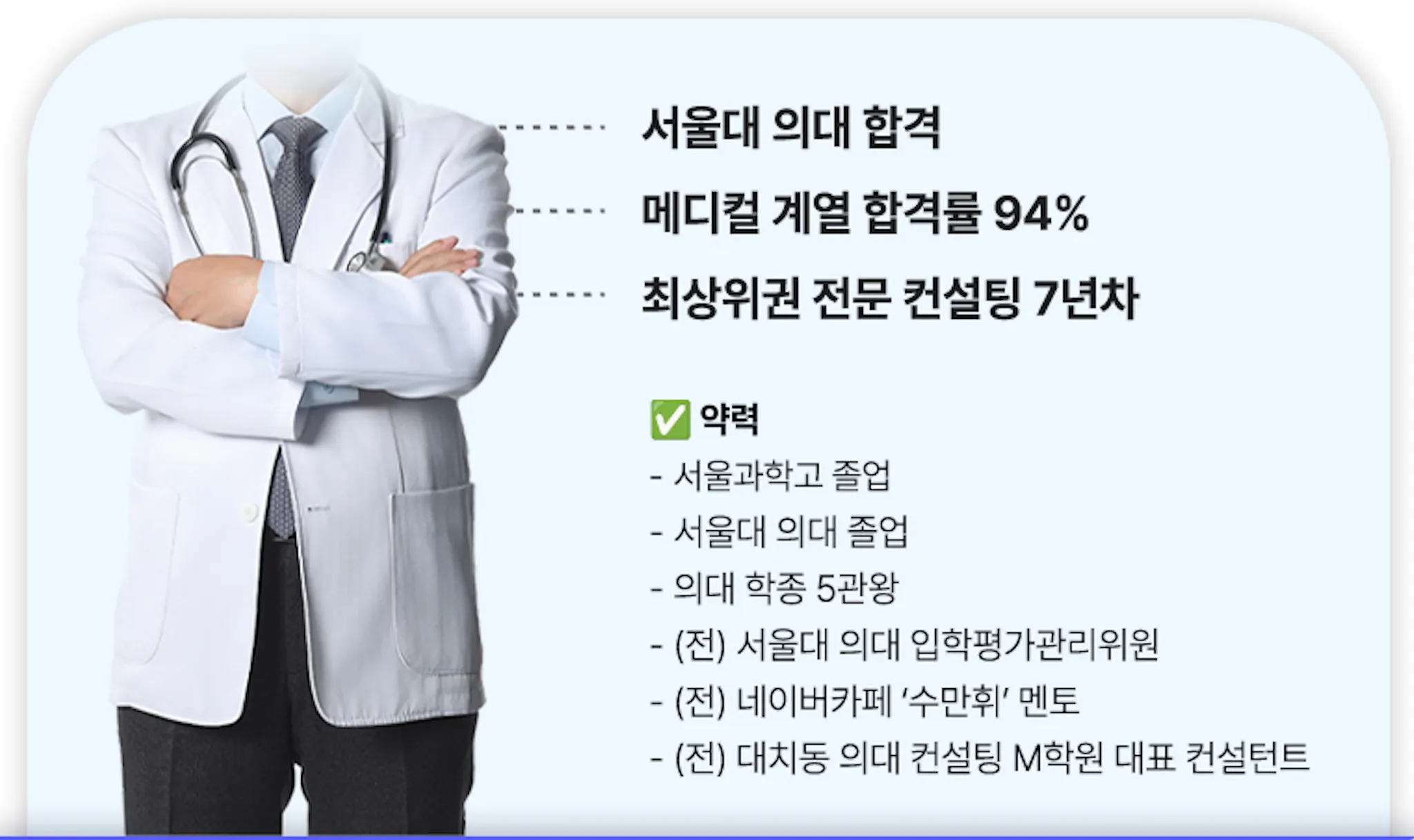 최상위권 학생들의 경쟁력을 만들어온 만큼, 그 누구보다 생활기록부를 보는 눈이 높다고 장담할 수 있습니다.
